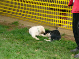 Sur scéne, 5 chiens évoluent pour illustrer des tableaux durant tout le spectacle.